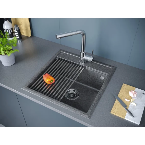 Кухонная мойка Paulmark Stepia PM115051-DG+R375-BS 50x51 см, графит