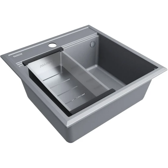 Кухонная мойка Paulmark Stepia PM115051-GRM+A375-BS 50x51 см, серый металлик