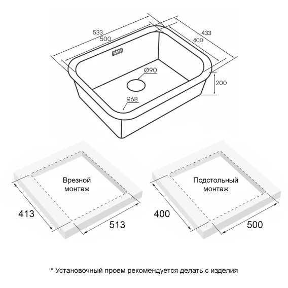 Кухонная мойка Paulmark Vello VE53-BS 53,3x43,3 см, нержавеющая сталь