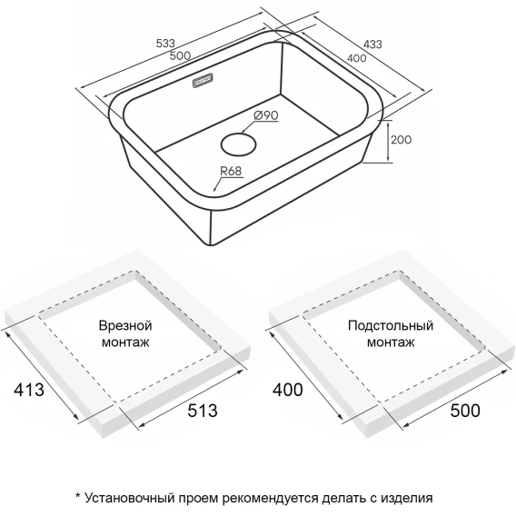 Кухонная мойка Paulmark Vello VE53-GM 53,3x43,3 см, вороненая сталь