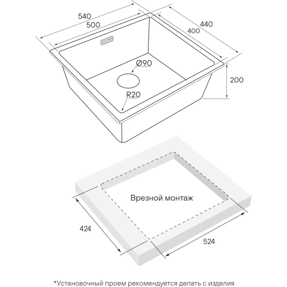 Кухонная мойка Paulmark Vista PM305444-BS 54x44 см, нержавеющая сталь
