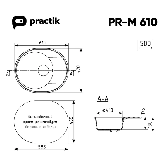 Кухонная мойка Practik PR-M-610-003 61x47 см, светло-серый