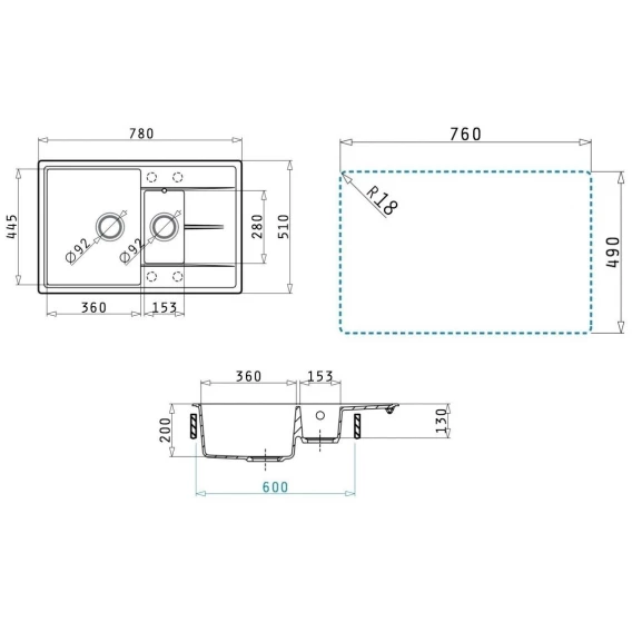 Намеченных отверстий для смесителя