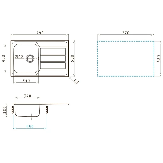 Кухонная мойка Pyramis Athena 1B 1D сатин 100178701