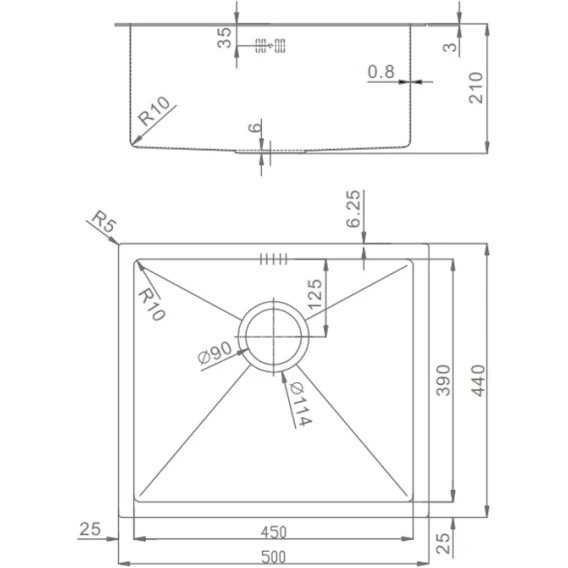 Кухонная мойка Raglo R703.5044.09 50x44 см, графит матовый