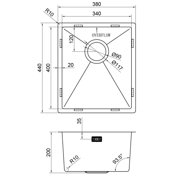 Кухонная мойка Reflexion Como RX2038BL 38x44 см, оружейная сталь
