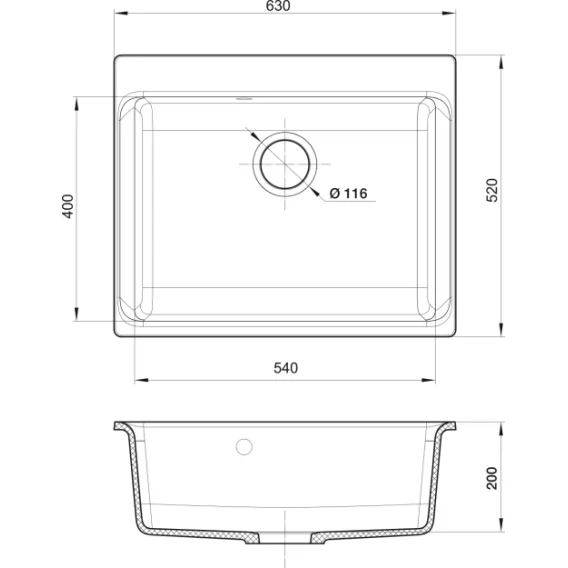 Кухонная мойка KuchenStern a-Granit Sub 60 201BL20 56x43,5 см, черный