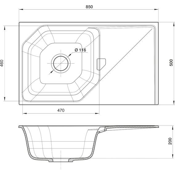 Кухонная мойка Rivelato Locus LS-85 topazio 85x50 см, топаз