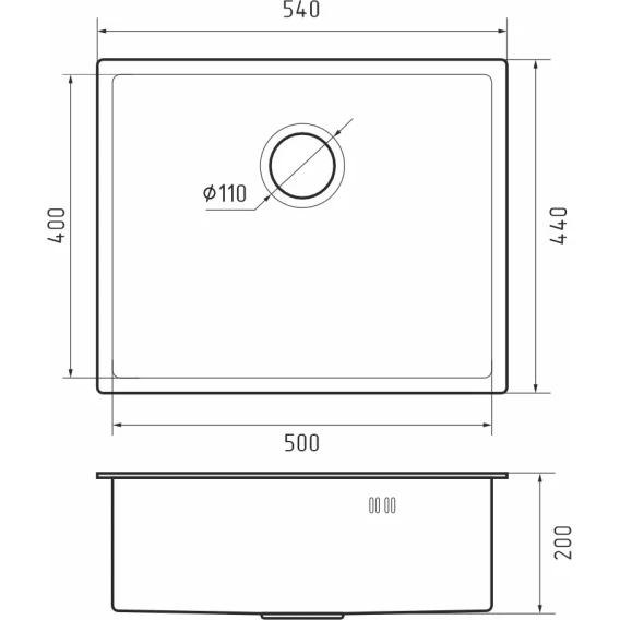 Кухонная мойка Rivelato Rinox 5444 UN PVD black 54x44 см, черный