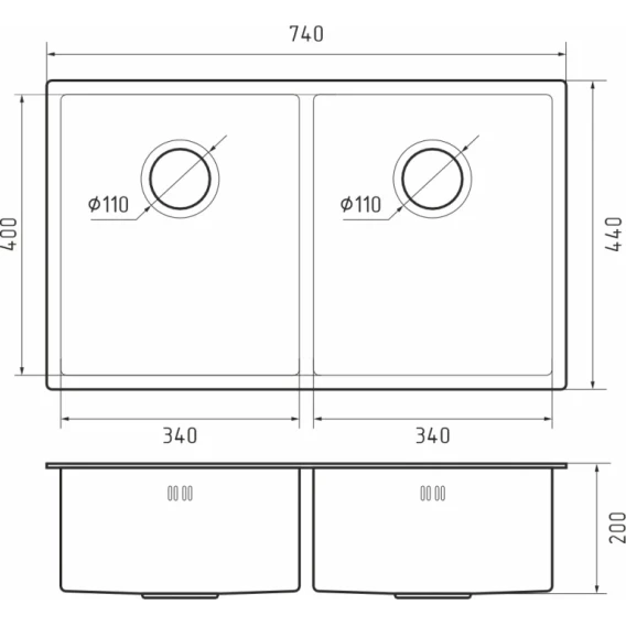Кухонная мойка Rivelato Rinox 7444 U2 74x44 см, нержавеющая сталь