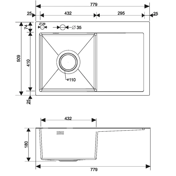 Кухонная мойка РМС нержавеющая сталь MRK-7851L