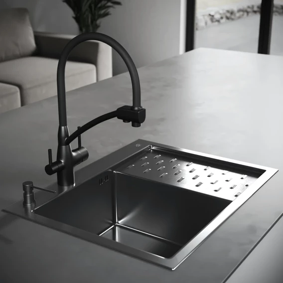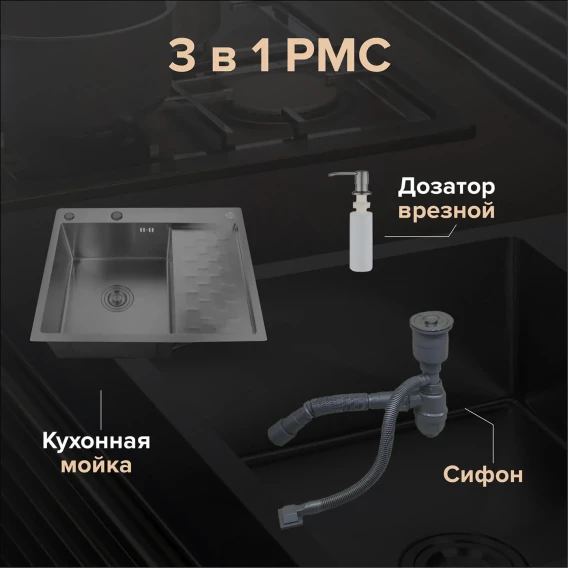 Кухонная мойка РМС вороненая сталь MRK-6350BL-L