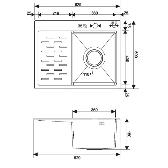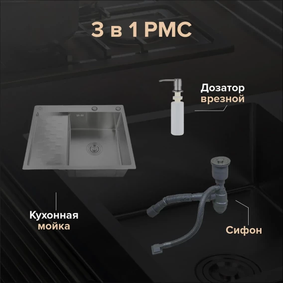 Кухонная мойка РМС вороненая сталь MRK-6350BL-R