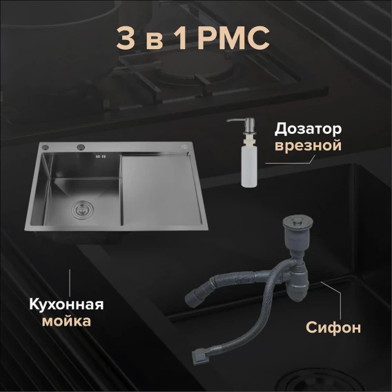 Кухонная мойка РМС вороненая сталь MRK-7851BL-L