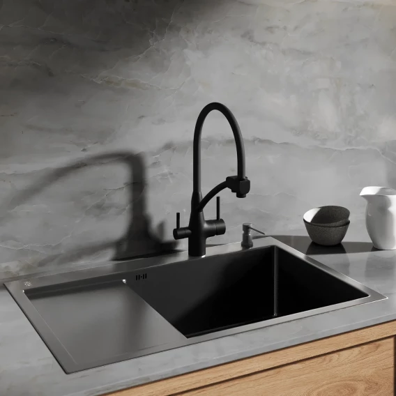 Кухонная мойка РМС вороненая сталь MRK-7851BL-R