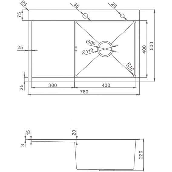 Кухонная мойка Splenka S705.7850.05 78x50 см, сатин