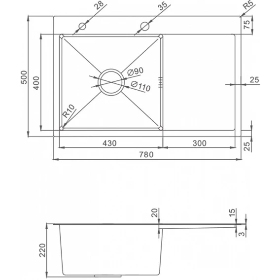 Кухонная мойка Splenka S705.7850.05 78x50 см, сатин