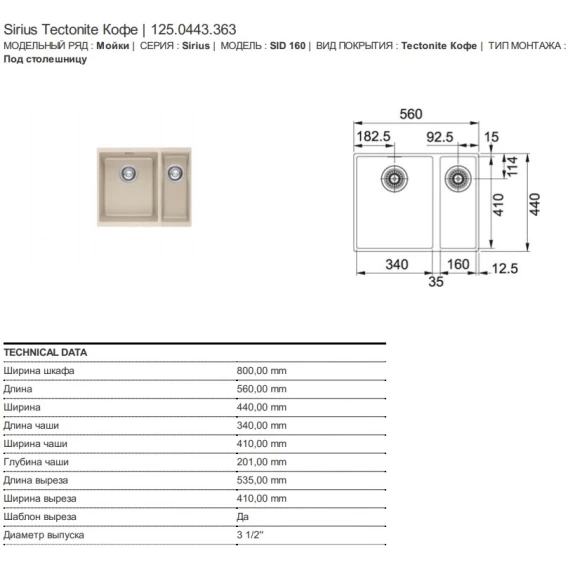 Кухонная мойка Tectonite Franke Sirius SID 160 сахара 125.0443.363