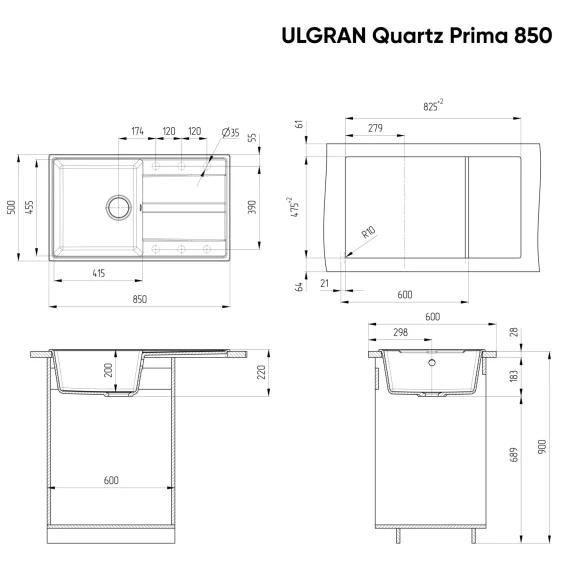 Кухонная мойка Ulgran мокрый асфальт Prima 850-09