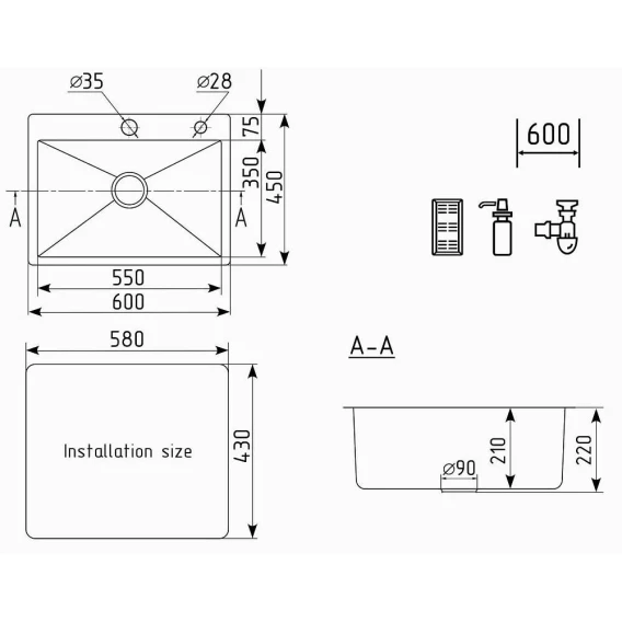 Кухонная мойка Ulgran нержавеющая сталь US 600-001