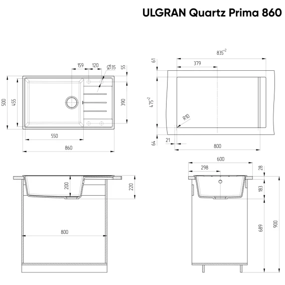 Кухонная мойка Ulgran трюфель Prima 860-06