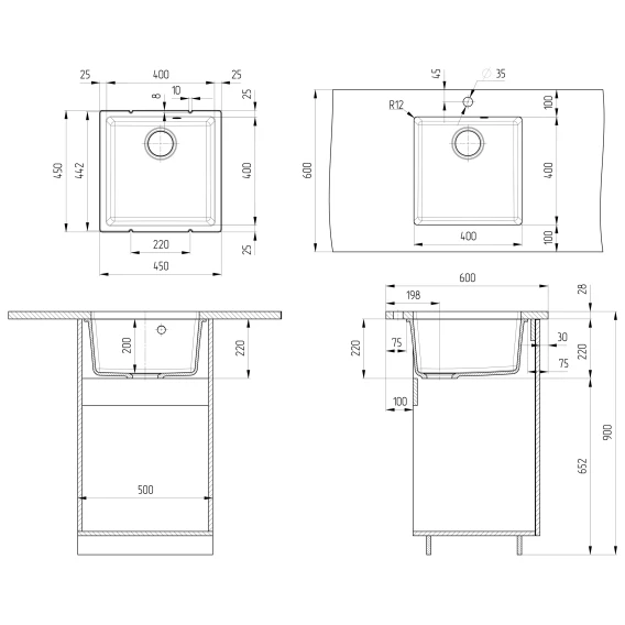 Кухонная мойка Ulgran Under 400-06 45x45 см, трюфель