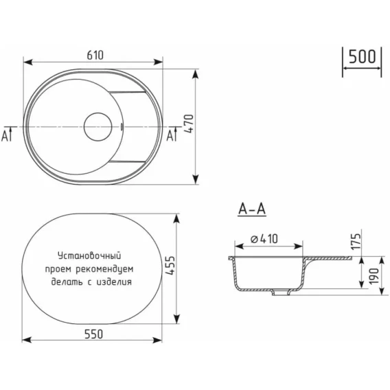 Кухонная мойка Uperwood Econ UPD-107 4910201243 61x47 см, белый матовый