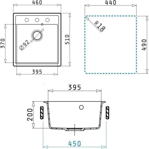 Кухонная мойка Uperwood Quartz Premium UPD-07 3910202127 46x51 см, черный