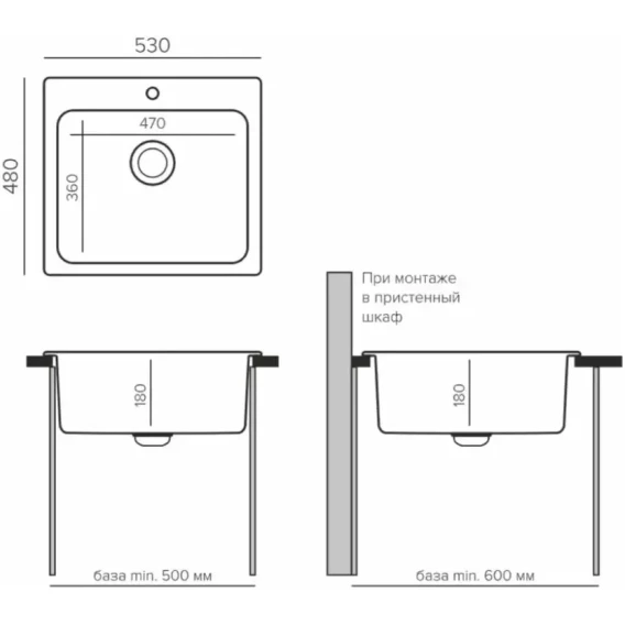 Кухонная мойка Uperwood UPD-104 391020207 53x48 см, уголь
