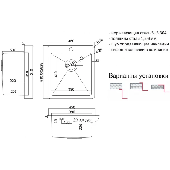 Кухонная мойка Zorg HD 4551 45x51 см, нержавеющая сталь