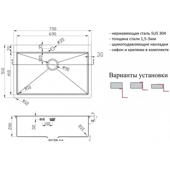 Кухонная мойка Zorg HD 7551 75x51 см, нержавеющая сталь
