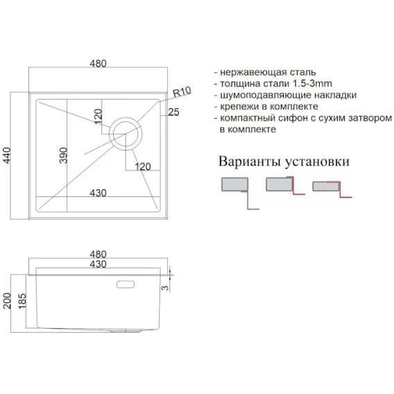 Встраиваемая сверху, Встраиваемая снизу, В один уровень со столешницей