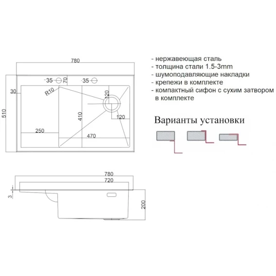 Кухонная мойка Zorg LUX 7851-R 78x51 см, нержавеющая сталь