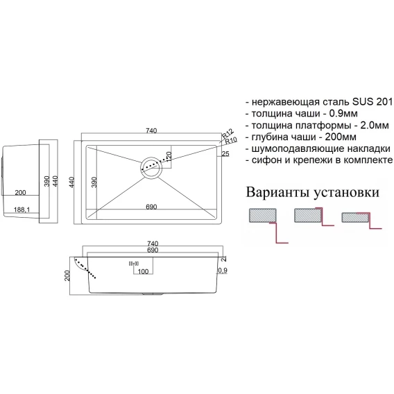 Кухонная мойка Zorg SH 7444 74x44 см, нержавеющая сталь