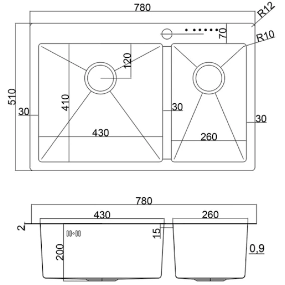 Кухонная мойка Zorg SKS 78-2-51-R GRAFIT 78x51 см, графит