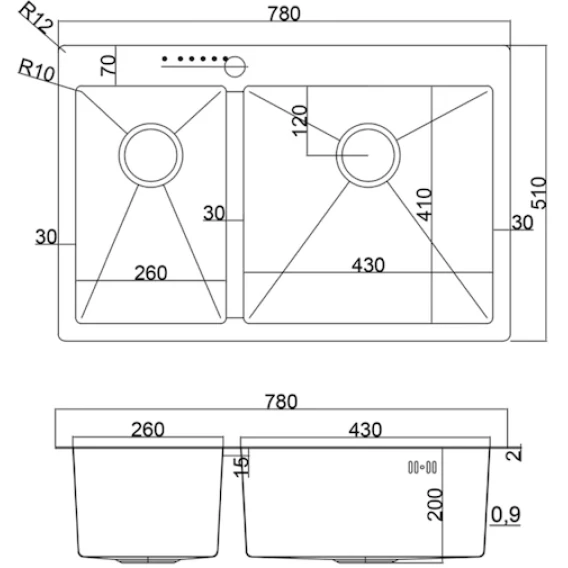Кухонная мойка Zorg SKS 78-2-51-R GRAFIT 78x51 см, графит