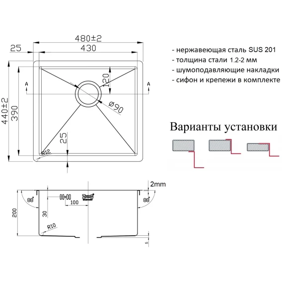 Кухонная мойка Zorg ZL R 480440 48x44 см, нержавеющая сталь