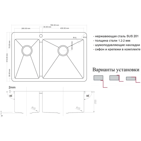 Кухонная мойка Zorg ZL R 780-2-510-R BRONZE 78x51 см, бронза