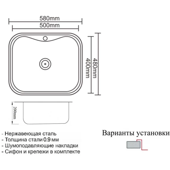 Кухонная мойка Zorg ZR 5848 58x48 см, нержавеющая сталь