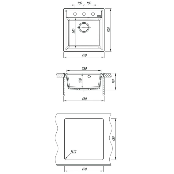 Намеченных отверстий для смесителя