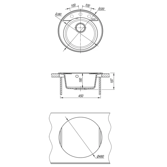 Намеченных отверстий для смесителя
