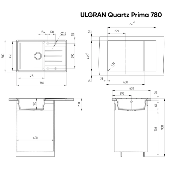 Кухонная мойка Ulgran трюфель Prima 780-06