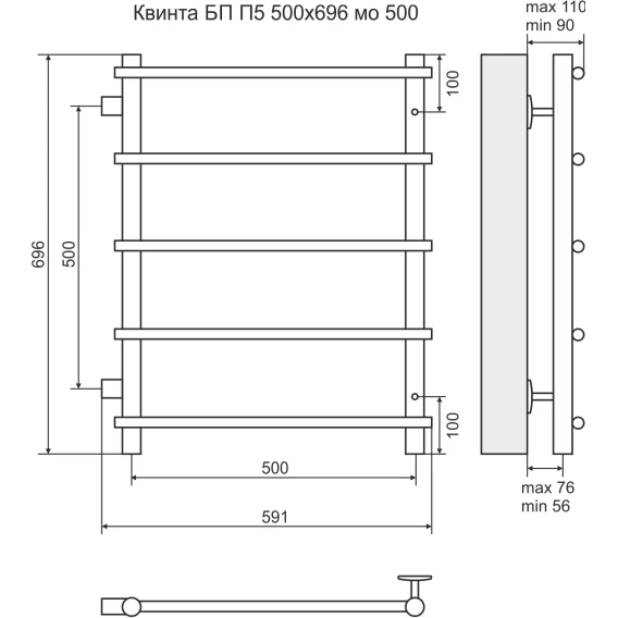 Полотенцесушитель водяной 696x591 Terminus Квинта П5