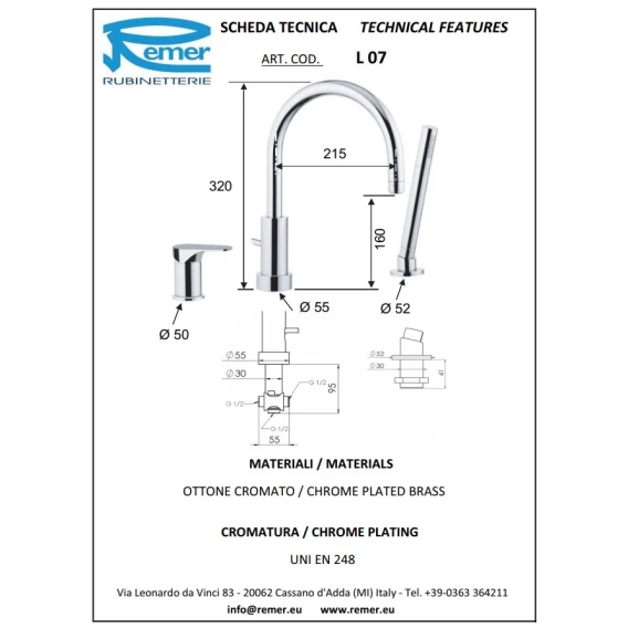 Смеситель для раковины без донного клапана Remer Liberty 14LI