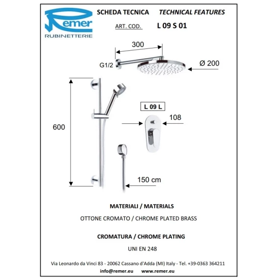 Душевой комплект 200 мм Remer Qubika Q937S02
