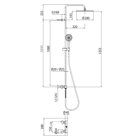Металлическая розетка, Эксцентрики, Душевой шланг, Душевая лейка, Держатель для душевой лейки, Верхний душ, Кронштейн, Штанга душевая, Термостат