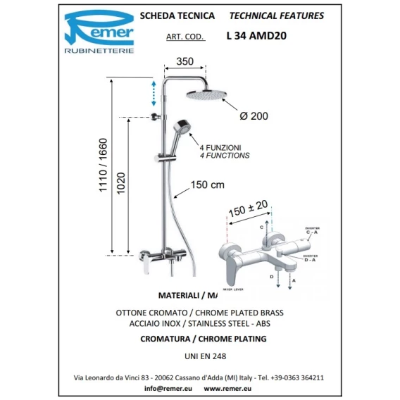 Аэратор, Металлическая розетка, Эксцентрики, Душевой шланг, Душевая лейка, Держатель для душевой лейки, Верхний душ, Смеситель, Кронштейн, Штанга душевая