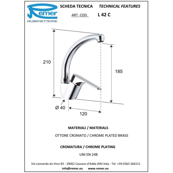 Смеситель для кухни Remer Class Line L42C