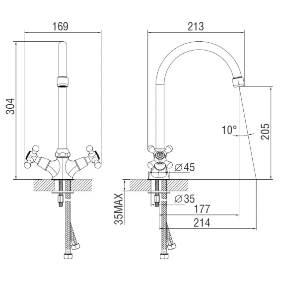 Крепление, Аэратор, Гибкая подводка