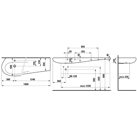 Умывальник со столешницей 160 см Laufen Alessi One 8.1497.1.400.104.1